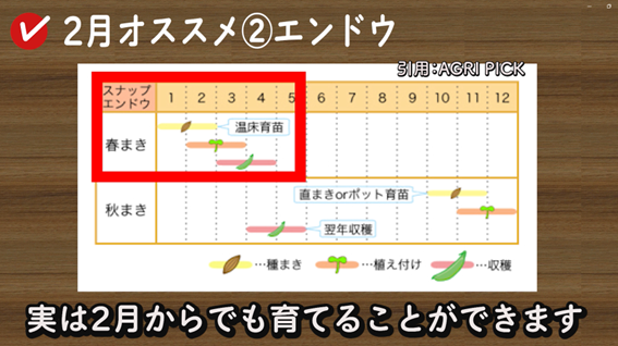 秋まきのイメージが強いエンドウですが、実は2月からでも育てることができます。