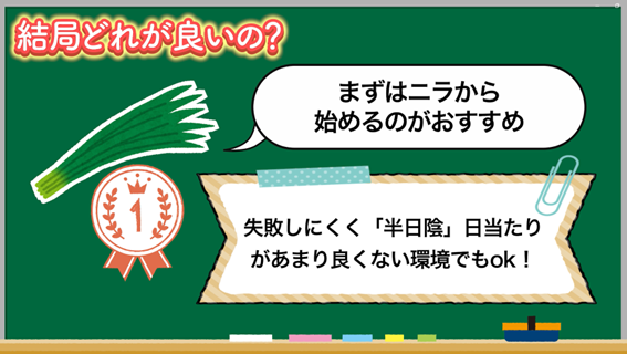 失敗しにくい「ニラ」から始めてみましょう!
