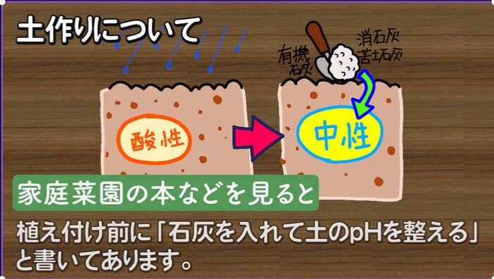 多くの野菜は中性から弱アルカリ性の土を好みます。