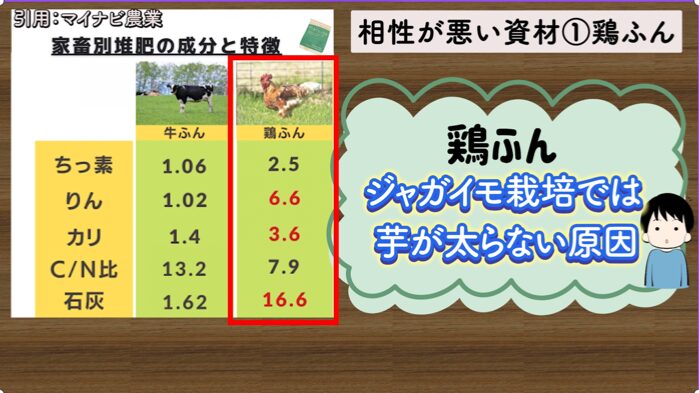 NG資材① 鶏ふん|つるボケとそうか病の原因