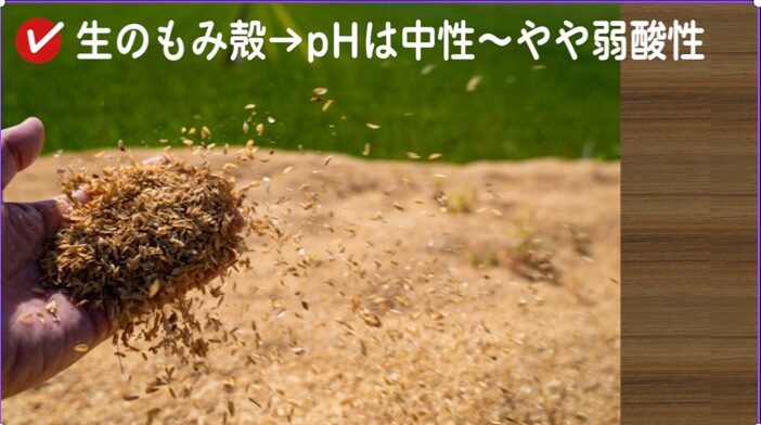 もみ殻くん炭はアルカリ性で、石灰と同じように土のpHを上げやすい性質があります。