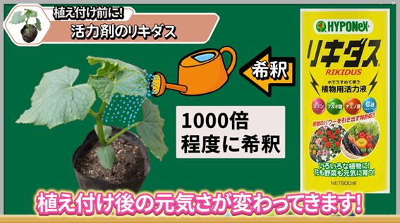 リキダスに含まれるアミノ酸やカルシウムなどの成分が根っこの働きを助けてくれるため、植え付け後の根付きがよくなります。