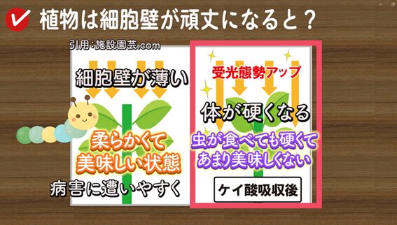 それは、ケイ酸には細胞の外側の壁である「細胞壁」を強くしてくれる効果があるから!