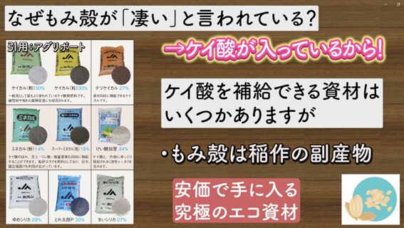 もみ殻が「凄い」と言われているのは、もみ殻に「ケイ酸」という成分が入っているからなんです!
