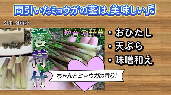 実は、この時に間引いたミョウガの芽や茎は食べられるのです。さっと茹でておひたしにしたり、天ぷらにしたり。刻んで味噌と和えてもよし!