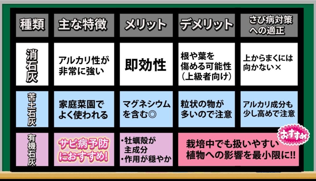 サビ病対策におすすめの石灰の種類