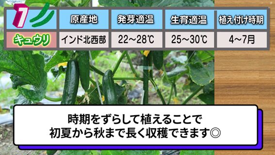7番目 は、家庭菜園でも人気の高いウリ科の野菜「キュウリ」です。