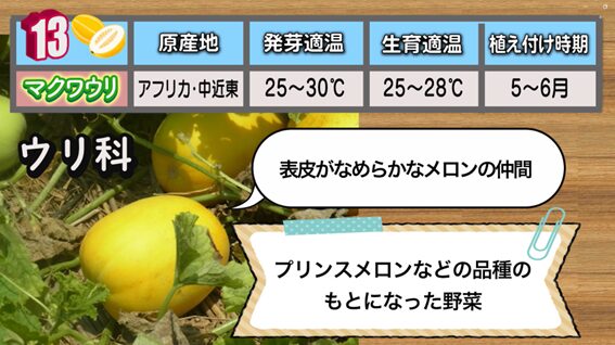 13番目は、「マクワウリ」です。同じ種類のメロンに比べて栽培が簡単です。