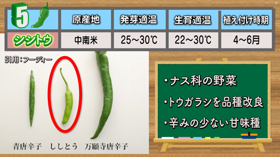 5番目は、ナス科の野菜の「シシトウ」です。