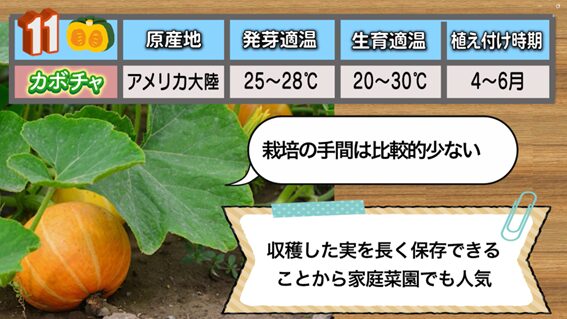 11番目は、栽培の手間が比較的少ない「カボチャ」です。