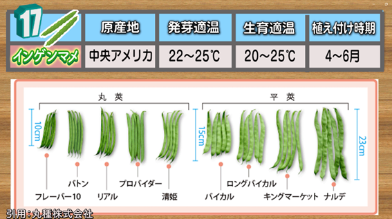 ラストの17番目は、「インゲンマメ」です。病害虫にも強く、比較的丈夫で育てやすい野菜です。