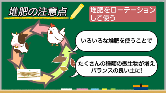 堆肥を使う際には、同じ種類の堆肥を使い続けないようにしてください。