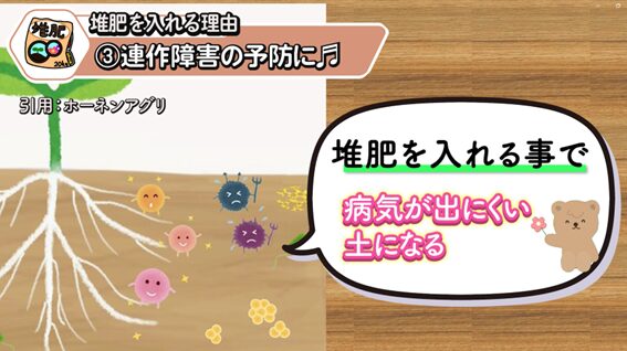 すると、堆肥が土の環境そのものを整えてくれるので、連作障害を防げるっていうことなんですよね。