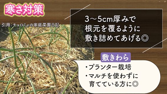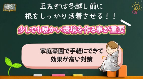 冬越し前に玉ねぎの根っこをしっかり活着させるためには、少しでも暖かい環境をつくってあげることが重要です。