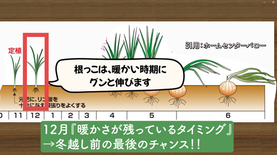 今の時期に根っこの量を増やしておくと、寒さにビクともしない強い玉ねぎを育てられ、春の成長をスムーズに進めることができます!