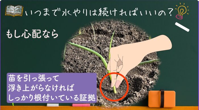 - 根付いたかどうかは軽く引っ張って抜けないかで確認できる