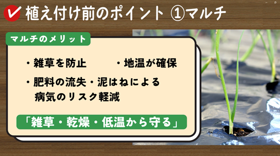 今回は、玉ねぎ栽培で重要な「植え付け前の3つの準備」についてお話しました。どれも簡単なポイントですが、マルチやリキダスを使ったことがない人も多いのかもしれません。こちらの動画でさらに詳しく説明していますのでご覧ください。