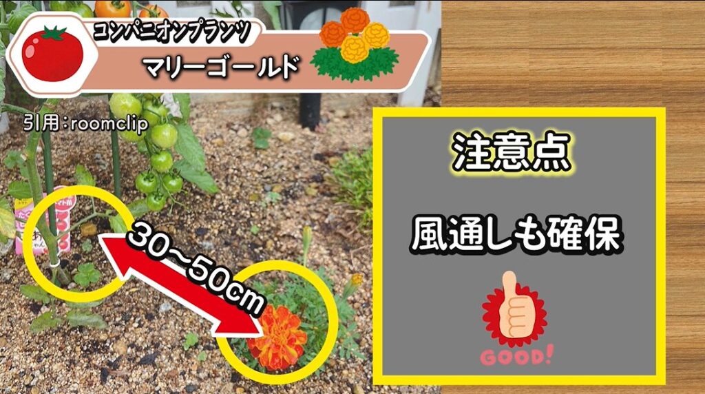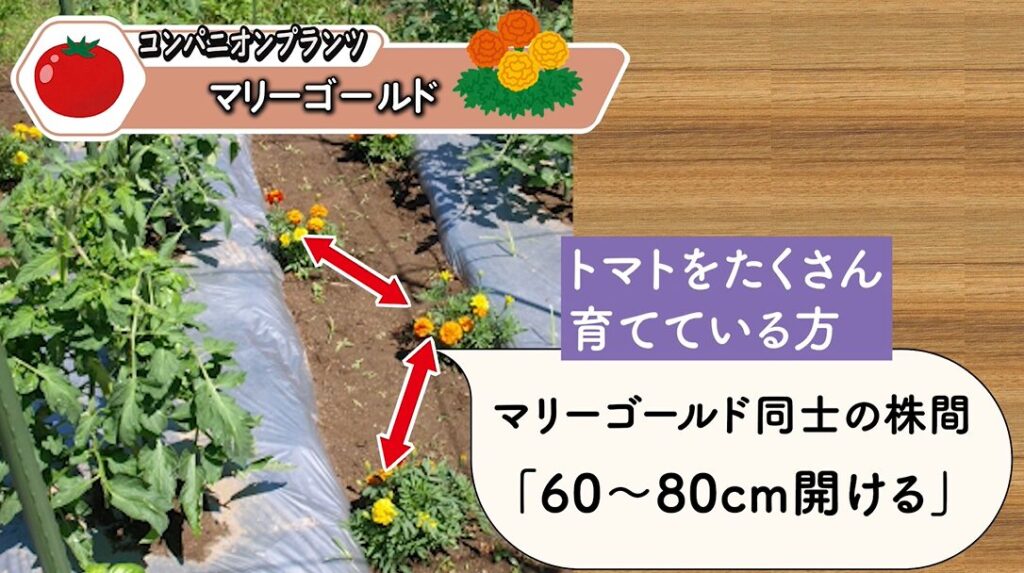 こうすることで、風通しを確保しながら、マリーゴールドの効果をしっかり発揮させることができます。