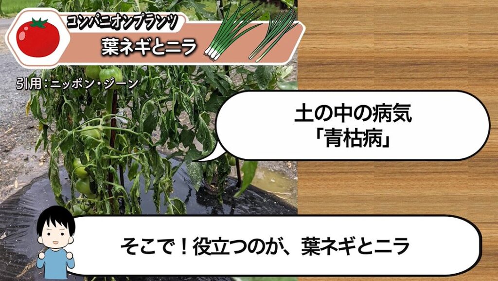 - 病気対策として「葉ネギやニラ」