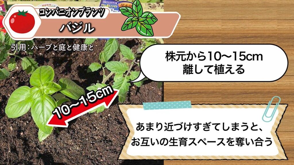 バジルをトマトと一緒に育てるときも、植える距離に注意しましょう。